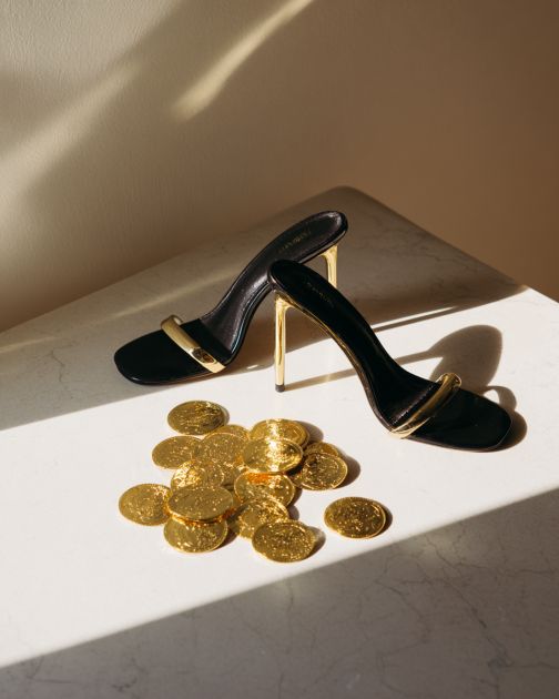 1 black high heel shoe