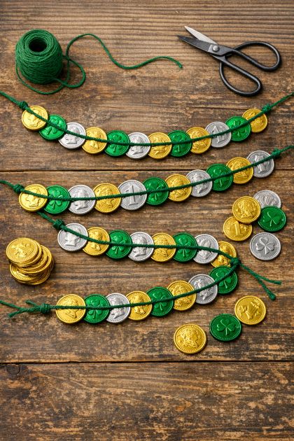 Creating a DIY coin garland is an easy and delightful craft project that can add a touch of sparkle and whimsy to your living room. This shimmering garland, made by stringing shiny plastic coins onto green twine, can be a magical addition to your home decor. Perfect for festive occasions or as a permanent fixture, this garland is sure to catch the eye and inspire conversation.