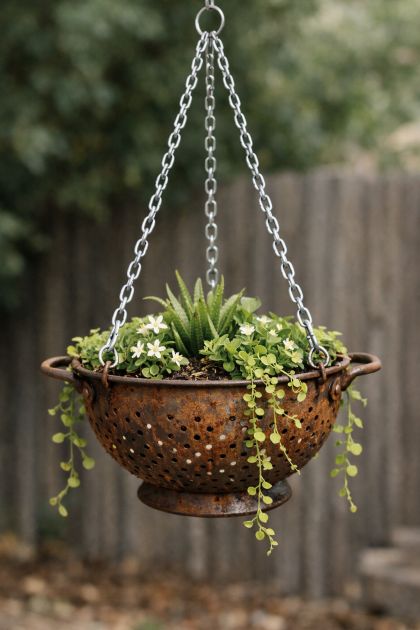 Rustic Colander Hanging Planter