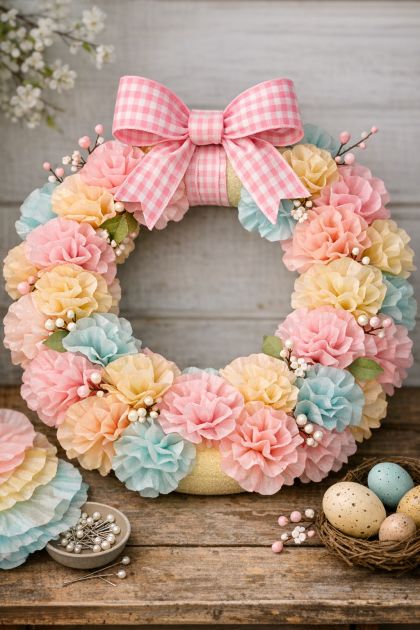 Creating a spring blossom wreath using pastel dyed coffee filters and a foam pool noodle is a delightful and cost-effective way to bring a touch of spring into your home. This DIY project is perfect for those who love crafting and want to add a unique, handmade element to their decor. The use of pastel colors mimics the soft hues of blooming flowers, making it an ideal decoration for the spring season.