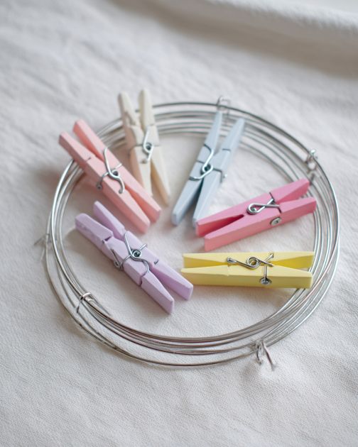 Choose 80 bright pastel plastic clothespins in a variety of colors to create a vibrant look.