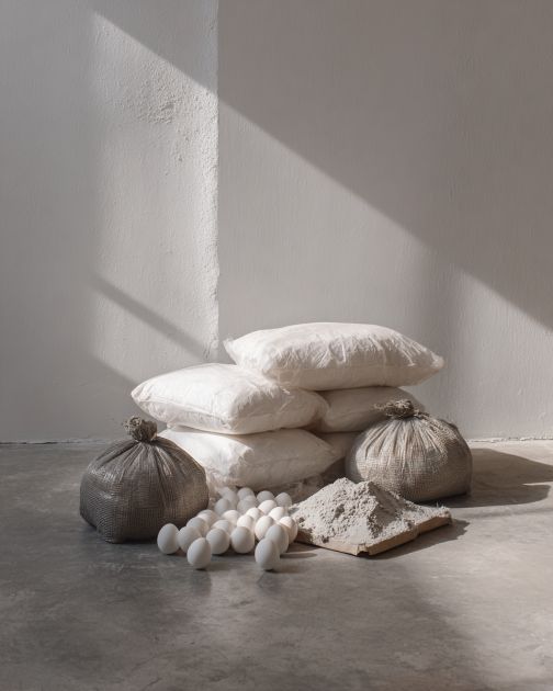Allow the filled eggs to sit undisturbed on the tarp for the recommended drying time specified on your concrete mix package.