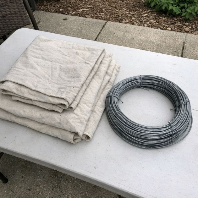 Position the canvas drop cloths along the wire as desired. Use additional wire rope clips to secure the wire if necessary.