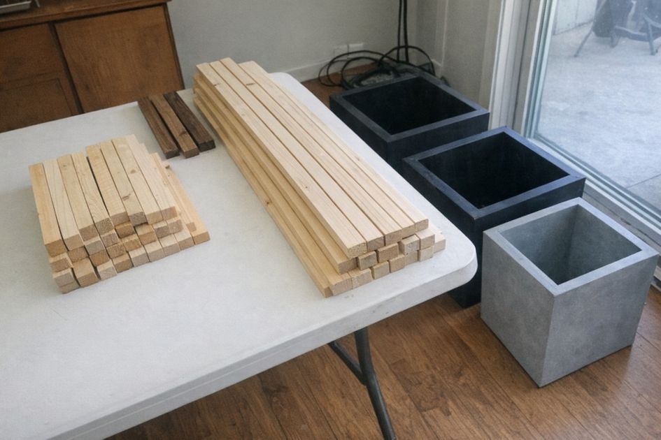 Position the two heavy square planters on either side of where you want the enclosure to start.