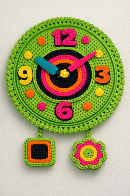 Funky Retro Crochet Wall Clock