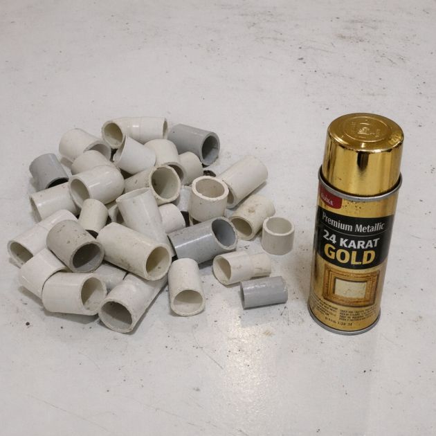 Begin by sanding down any rough edges on the PVC pipe scraps to ensure a smooth surface for painting.
