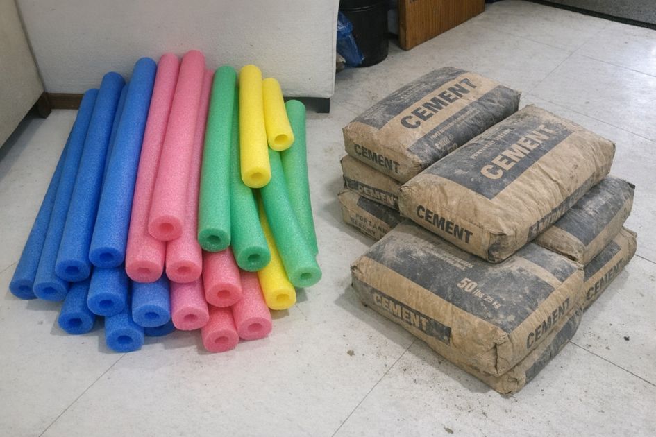 Continue to layer cement between and over the noodle sections until the mold is filled.