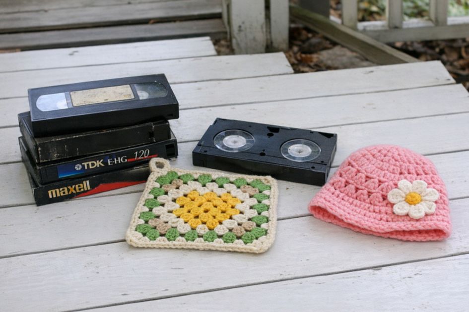 VHS Tapes Crocheted Accent Piece