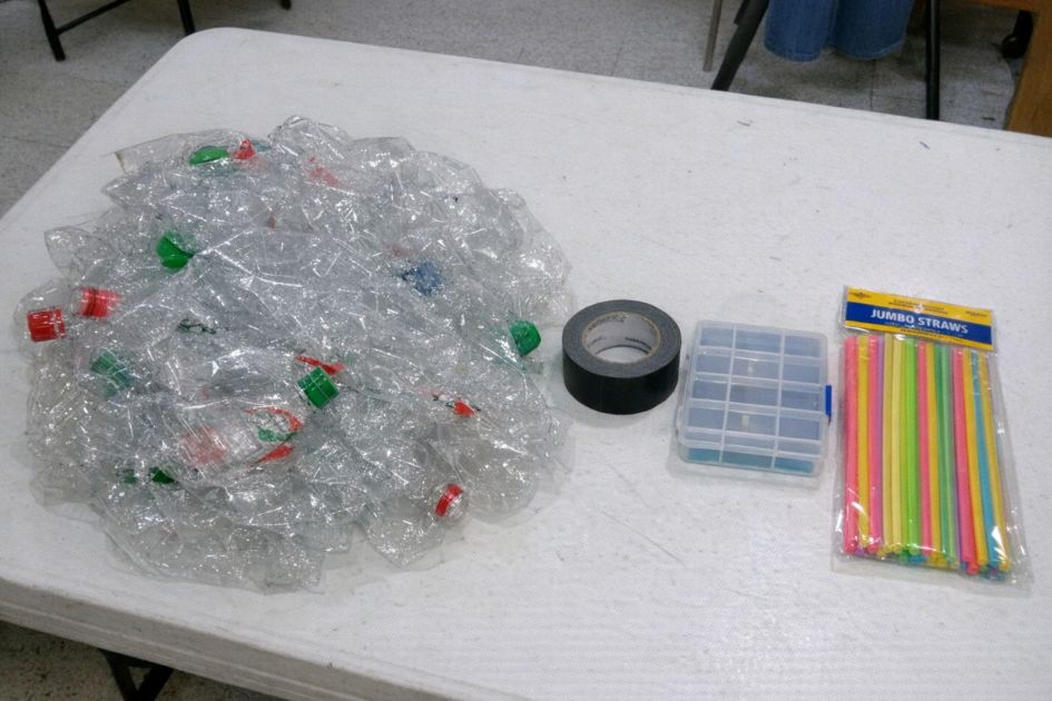 Cut the crushed soda bottles into small pieces using scissors. Be cautious of sharp edges.