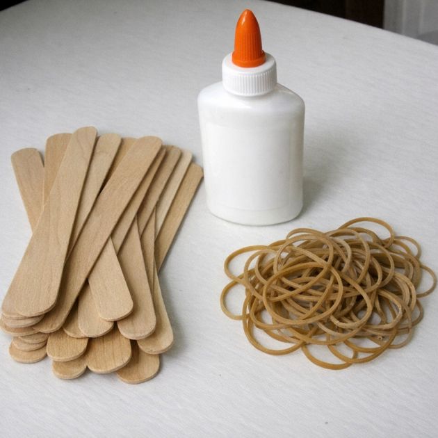 Once the glue is dry, carefully lift the assembled circle of stirrers. It should now form a slatted cylindrical shape.