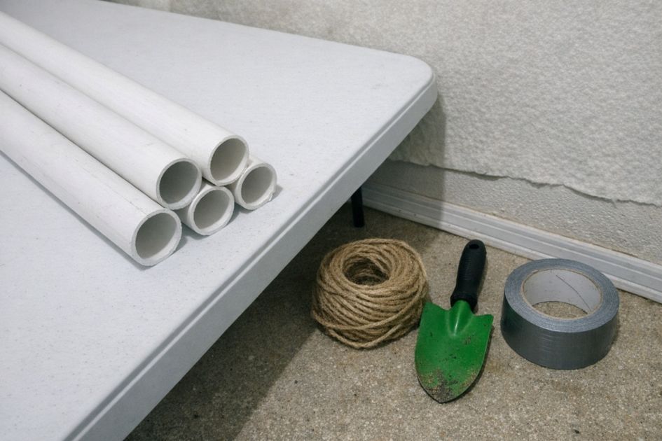 Place the PVC pipe on a sturdy surface, like a wooden potting bench.