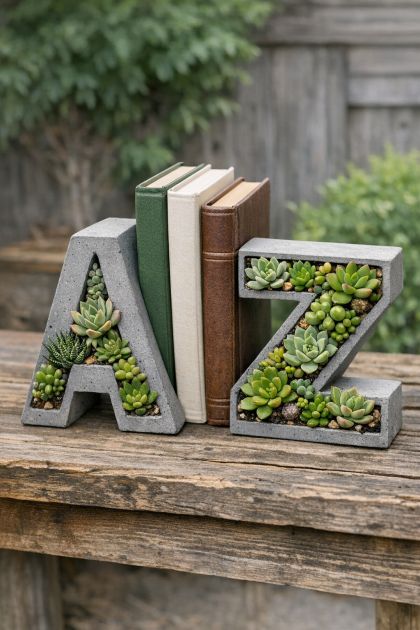 Transform your front porch steps into a delightful and inviting space with these DIY outdoor bookend planters. By filling concrete letter molds with succulents, you create a unique and eye-catching display that not only adds a splash of green but also showcases a bit of personal flair. This project is perfect for homeowners looking to enhance their outdoor aesthetic with minimal maintenance plants and a modern touch.