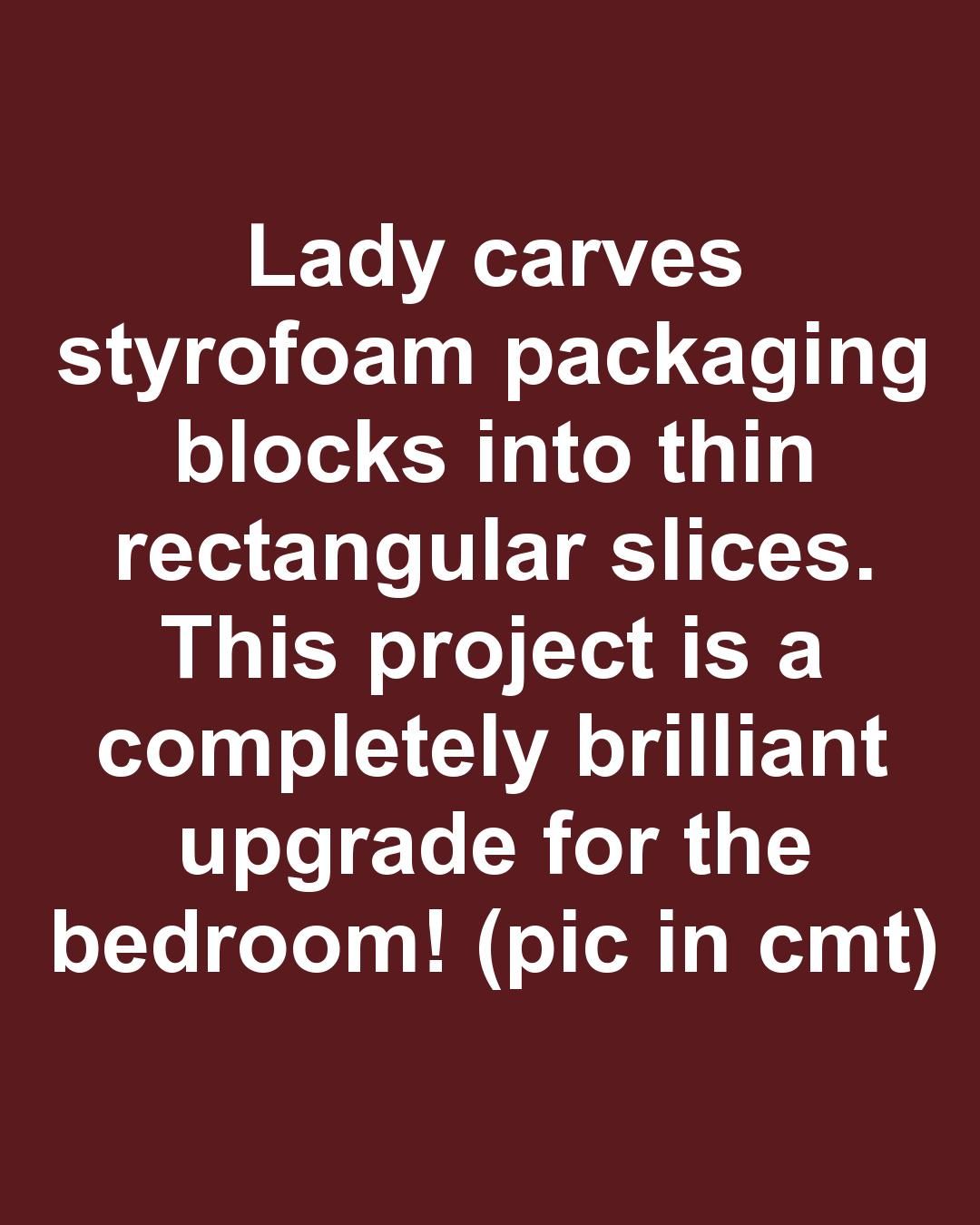 Lady carves styrofoam packaging blocks into thin rectangular slices. This project is a completely brilliant upgrade for the bedroom!
