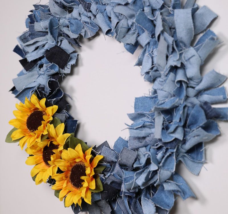Turn old jeans into pretty front door decor